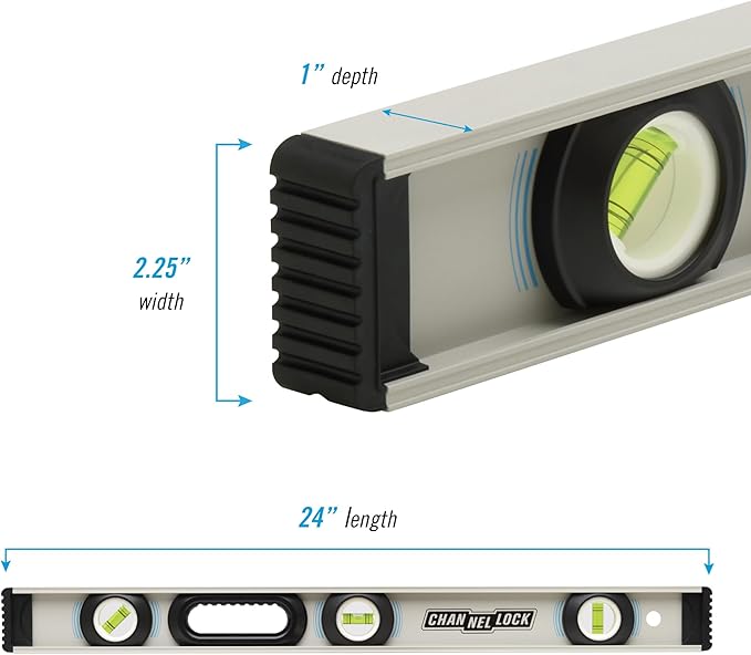 CHANNELLOCK 24-Inch, Professional-Grade Aluminum I-Beam Level with 3 Vials, 5100-0024