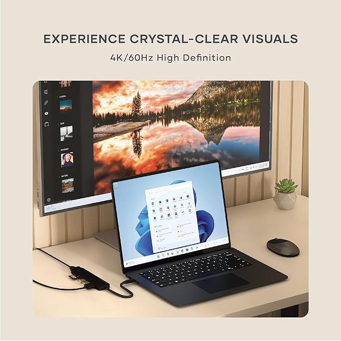 - Crystal-Clear 4K Connectivity – Unlock stunning 4K @ 60Hz video output by seamlessly connecting an HDMI 2.0 or higher cable to the USB-C hub. Enjoy crisp, vivid visuals—perfect for streaming, presentations, or extending your workspace with ultra-high-definition clarity.