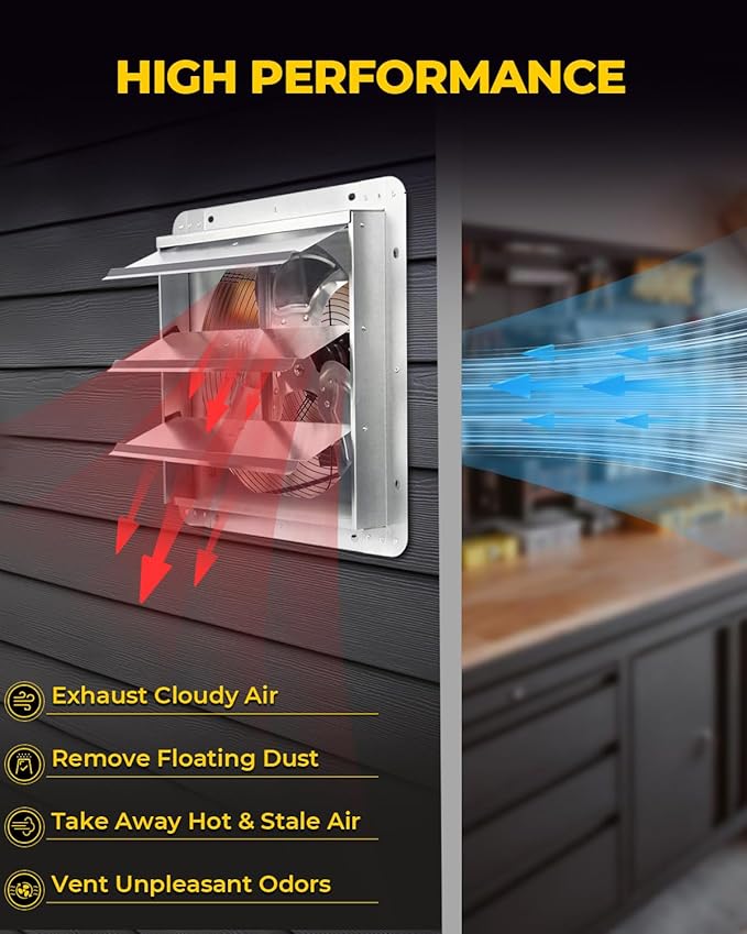 - Rustproof Aluminum Shutter Exhaust Fan: 14 inch corrosion-resistant aluminum blades automatically open and close with fan operation, blocking pests, dust, and debris. Built to withstand moisture and high-temperature environments.