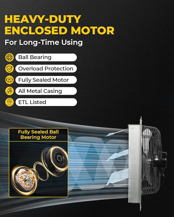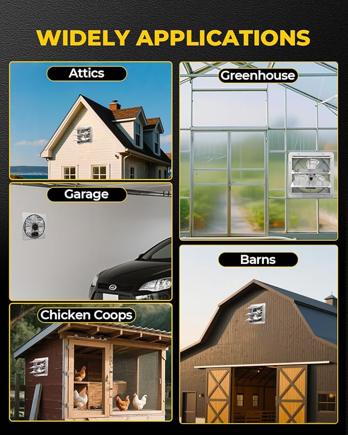- Heavy-Duty Ventilation for Diverse Spaces: 1,590 CFM airflow efficiently removes heat, fumes, and humidity from attics, workshops, factories, barns, and greenhouses. Ideal for residential, commercial, and agricultural use with 8.2 m/s wind speed.