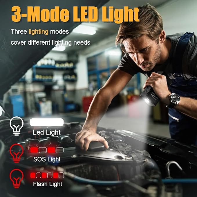 - Multi-functional Emergency Tool: The bicycle pump can not only be used as an air pump, it is also a multi-functional emergency tool. The flashlight on the top has 3 modes (flashlight, SOS, and strobe light) to light up the night for easy operation. The air compressor is equipped with USB-C and USB input/output ports to provide backup power for your cell phone and other electronic devices