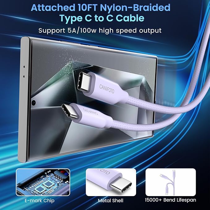 - 【2X 10FT Type C Cord】: This samsung galaxy s24 ultra charger kit come with 2pack 10ft/2m 100W Type-C charger fast charging cord, meticulously crafted with premium nylon braiding. The tangle-free cables provide the ultimate convenience, allowing you to comfortably charge your device from the comfort of your bed, couch, or office. Enjoy unparalleled flexibility and durability with galaxy charger fast charging cord.