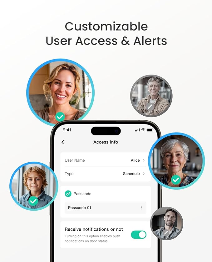 - ๐๐๐ฆ๐จ๐ญ๐ ๐๐ฆ๐๐ซ๐ญ ๐๐๐๐๐ฌ๐ฌ: Control your smart lock from anywhere with built-in Wi-Fi. Receive real-time lock status updates and customized notifications for different users