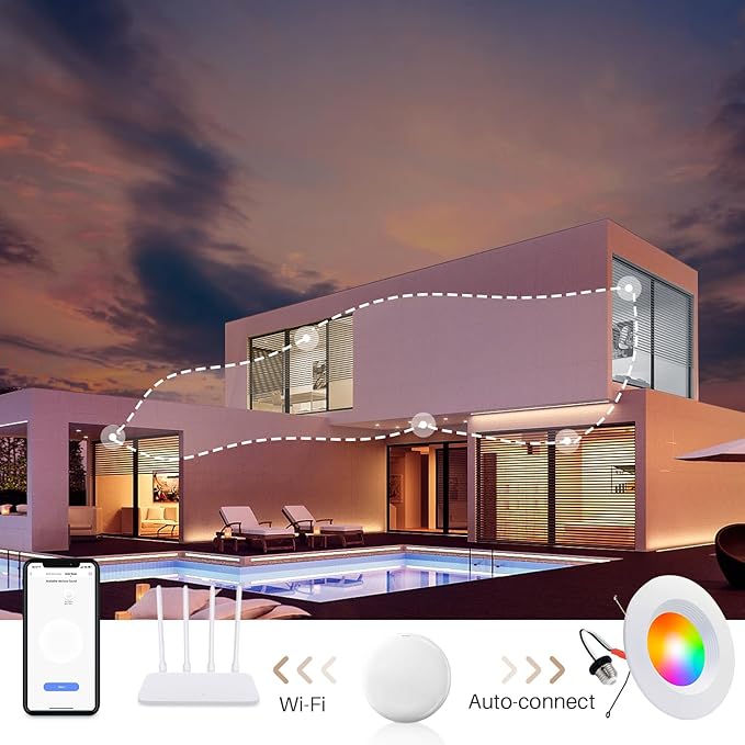 - Group Control and Schedule Lights - Group all the soffit can lights together and control at the same time so that you can seperatly control the 6in baffle lights of bedroom, living room, etc. Set schedule or timer on smart recessed lighting to turn on/off automatically, in groups or individually.
