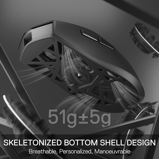 - 51 Grams Lightweight - A selection of ultra-lightweight materials and a carefully crafted shape with a skeletonized bottom provide the fastest, cleanest and fully controllable mouse experience. You can control the mouse with ease and comfort
