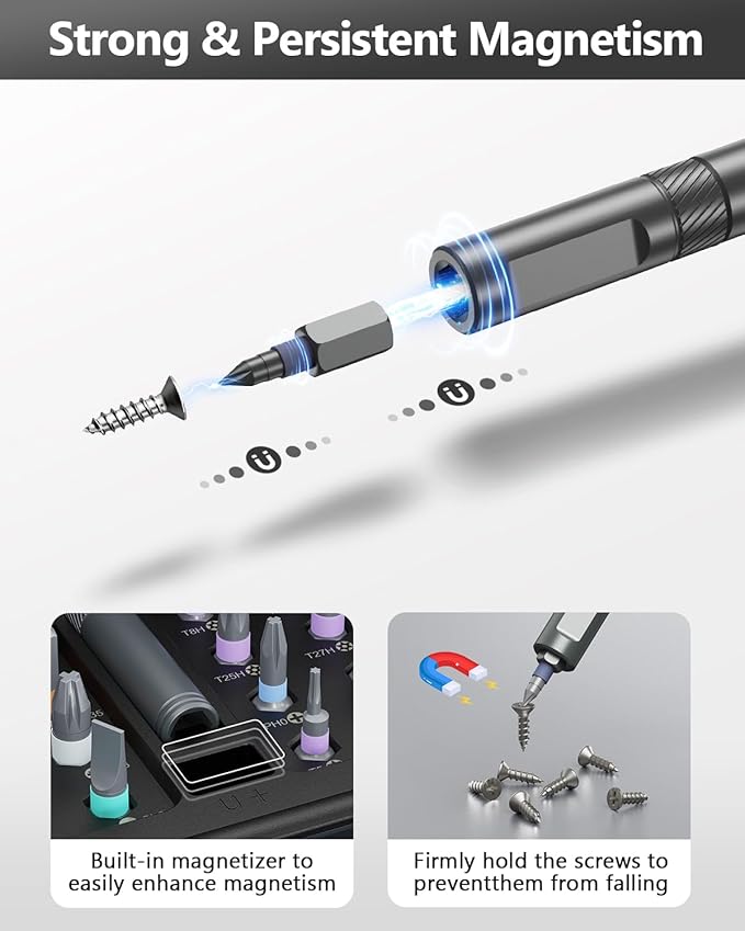 - 【Built-In Magnet System to Prevent Screw Drops】Combines ratchet screwdriver and mini wrench with powerful magnets to securely hold bits and screws; includes re-magnetizing chamber – a smart, no-drop solution in every magnetic screwdriver set