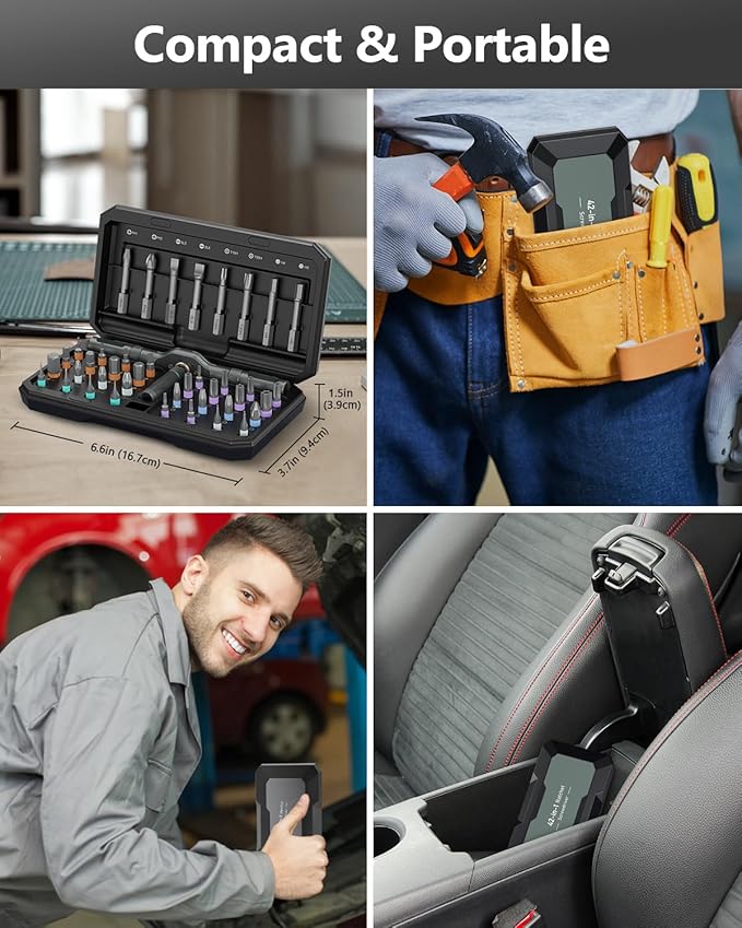 - 【Compact Storage Case for Easy Organization】Sleek, portable case (6.5 x 3.72 x 1.55 in) with color-coded bit layout ensures quick identification and safe storage – the perfect gift-ready screwdriver set for DIYers, dads, and professionals on any occasion