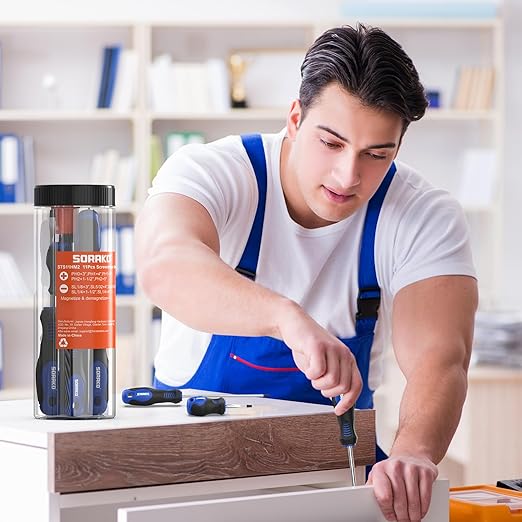 SORAKO 11-Piece Magnetic Screwdriver Set, 5 Phillips and 5 Slotted Tips, Include Magnetizer, Screwdriver with Professional Non-Slip Grip, for Home Repair and DIY Projects,With Case