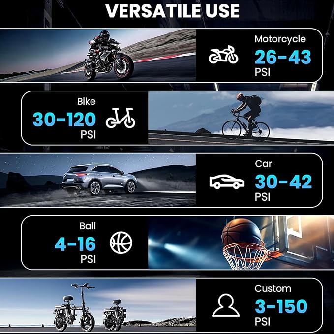 - Unique Feature:Quick-deflation valve & PSI auto-memory function.