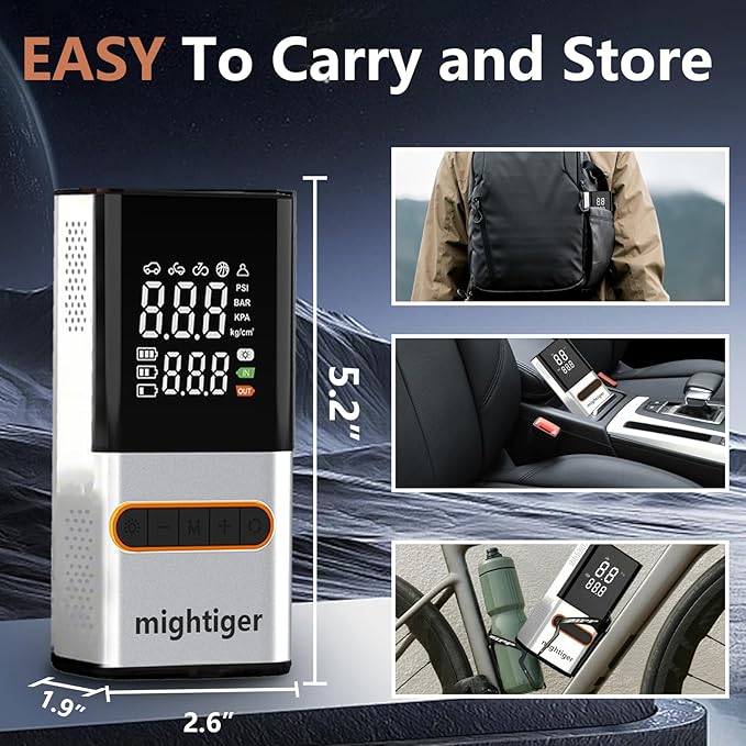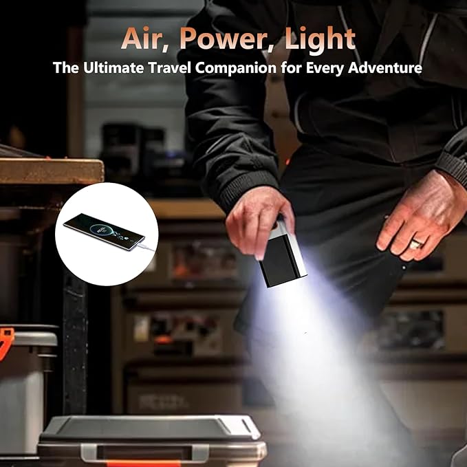 - Multi-fonction:Air Inflator with Integrated 2000*2mAh Power Bank.