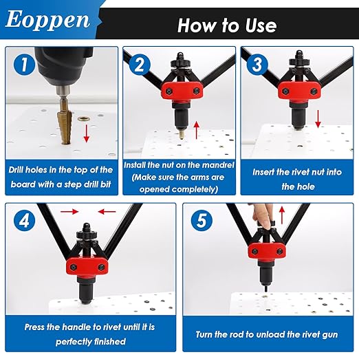 - Easy to use: The mandrel of rivet nut can be easily disassembled by hand, which is convenient for mandrel replacement and maintenance.The rivet nut tool comes with ergonomic handle that maximizes leverage and is easy to use