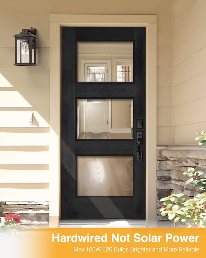 - 🌞 [Easy Installtion and E26 Socket] Tired of high electrician bills? Our pre-assembled outdoor lanterns for porch install in 3 steps: attach the bracket, connect wires, secure with screws—done. UL-certified and hardwired keep your outdoor lamp light on even in bad weather. ①Our outdoor light fixture made in Aluminum weighs only 3.44 pounds, making installation a breeze! ② Bottom opening allows you to easily change bulbs while maintaining good heat dissipation for longer bulb life. ③Color-coded wiring labels - allows for easy installation and DIY even if you are not an electrician. Dimmable LED bulbs or incandescent bulbs are recommended to avoid flickering issues.(Bulb not included)