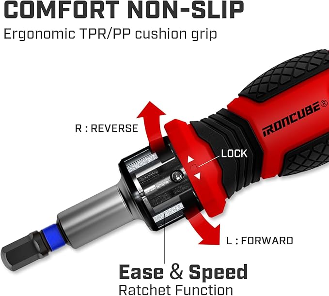 - 【TWIST CONTINUOUSLY, REDUCE WRIST FATIGUE BY 70%】The ratchet handle allows one-handed continuous twisting for faster tightening – no more back-and-forth motion! Ideal for assembling shelves, installing light fixtures, or working on electronics. Reduces hand strain after prolonged use, letting you finish projects without sore wrists.
