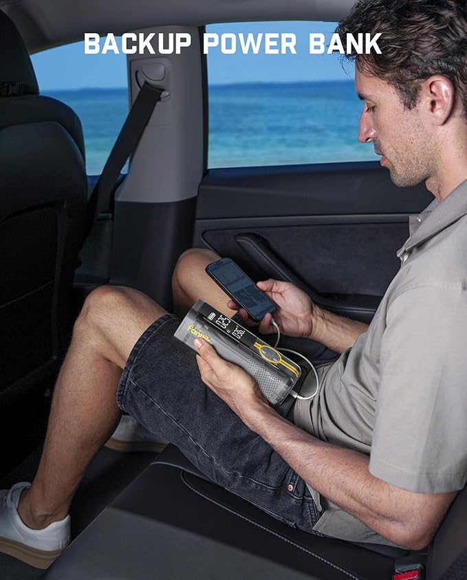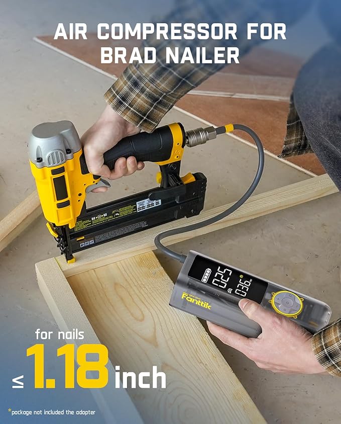- All in One Device - Inflator, Power Bank, Flashlight and Air Compressor for Brad Nailer: On the top of this air pump is a 2-mode LED light providing convenience for you to inflate and change tires in the dark. On the bottom there is a 5V/3A USB-C input port and a 5V/2A USB-A output port, making it an emergency power supply for your phone. And it also can be an emergency air compressor for brad nailer(for nails ≤1.18 inch)