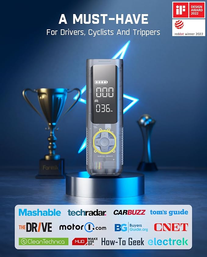 Fanttik X8 APEX Tire Inflator Portable Air Compressor, 1 Min Fast Inflation, 150PSI Cordless Tire Inflator with LED Dual Screen, Suitable for Car, Bike, Motorcycle, Up to 26.3″ Tires, Mechanical Gray
