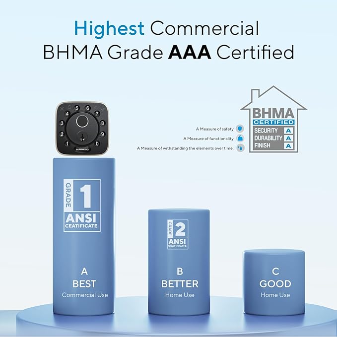 - BHMA Grade AAA Certified: Built to last with zinc alloy materials and a weather-resistant design, ensuring reliable performance in any climate