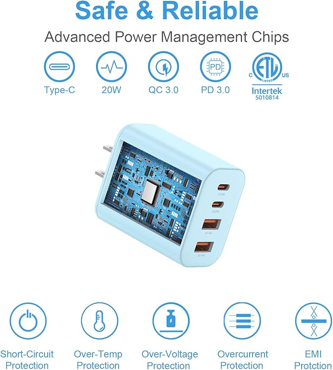 - 【Multiport Brick USB C Wall Charger 】Type C charger fast charging With provides over-current, over-voltage,over-heat and short-circuit protection for your devices to ensure safer charging.This PD Wall Charger can intelligently identify your devices and optimizes the fastest and most efficient output current.Safe charging and no damage to your devices.