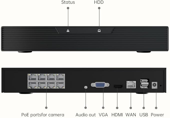 - 【24/7 Continuous Recording with 2TB HDD】Built-in 2TB hard drive and advanced H.265 video compression provide efficient, long-term 24/7 recording or motion-only storage. Expandable up to 10TB, the system supports simultaneous multi-camera live viewing and playback via NVR or the free app—anytime, anywhere.