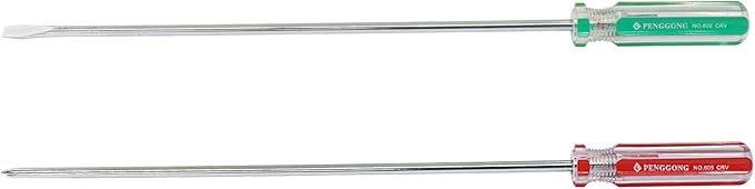 - Package Content: 1 x Long Phillips Screwdriver 10 Inch + 1 x Long Flat Blade Screwdriver 10 Inch, which is the ideal size and length for the job. The longer length allows you to easily enter the place.