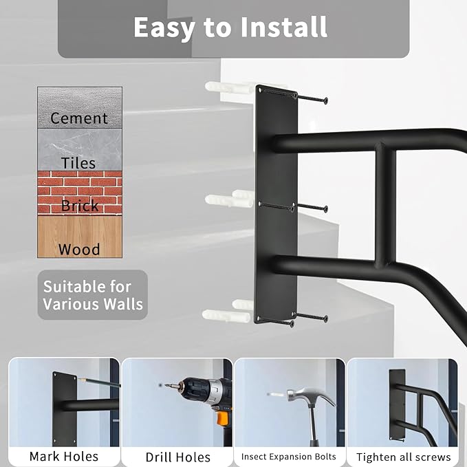 - 【Easy to Install】: Combined with the instruction manual, this Handrails can be easily installed indoors or outdoors where you want to install it.