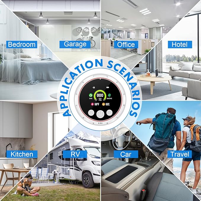 - 【Multi-functional Gas Alarm】The carbon monoxide detector is designed for home use and can detect a wide range of flammable and explosive gases, including liquefied petroleum gas (methaneCH4), compressed natural gas, natural gas, liquefied petroleum gas (LPG), ethane (C2H6), propane (C3H8), butane (C4H10), etc., temperature and humidity as well as carbon monoxide smoke, real-time detection of ambient gases for our safety.