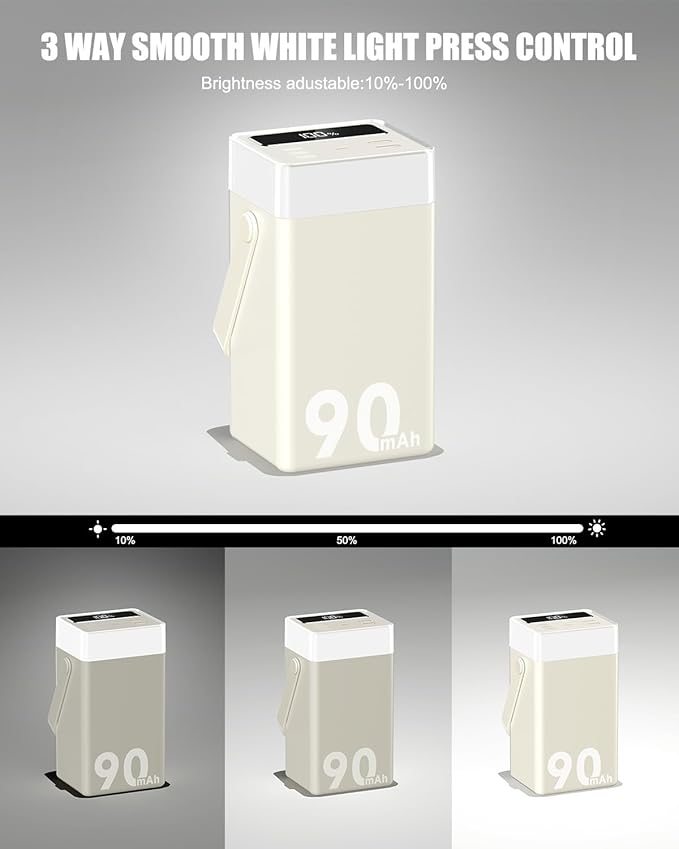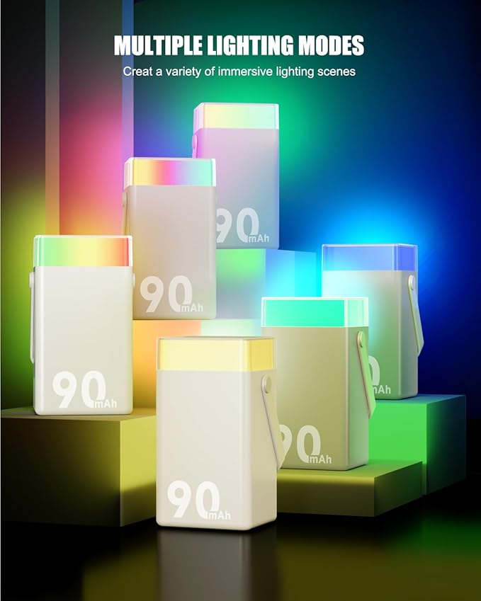 - 1. 4-IN-1 90000mAh Power Bank & RGB Mood Light & Table Lamp & LED Camping Lantern: Our power bank isn't just a 90000mahhigh capacity power bank, it also works as a RGB mood night light with 9 modes, table lamp with 3 modes, and outdoor LED Camping Lantern, emergency flashlight. Charge 5 Phones simultaneously; Built with UL-certified cells for safety and durability; Powers your smartphone about 10-20 times; Ideal for week-long camping trips