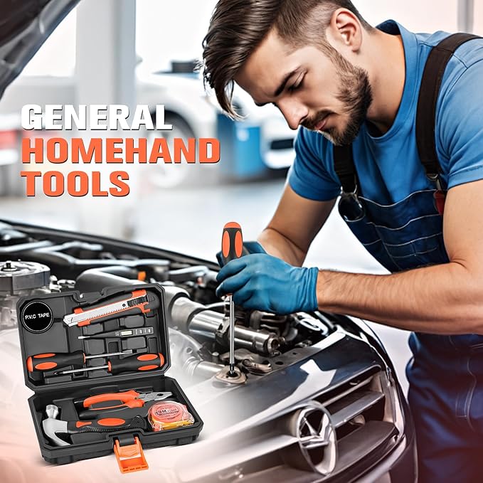 - Versatile 9-Piece Home Tool Kit: Equipped with essentials like a digital voltage tester, claw hammer, and tape measure, this compact home tool kit handles quick repairs, DIY projects, or emergency fixes. The plastic toolbox keeps everything organized and within reach