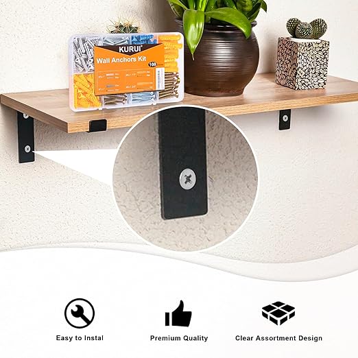 - SUITABLE FOR MULTIPLE WALL TYPES – Whether you're working with brick walls, concrete walls, dry walls, and wooden walls, this set provides a strong and secure fastening solution. The ribbed wall anchors expand for a tight grip, preventing rotation and enhancing stability. Perfect for mounting shelves, curtain rods, picture frames, wall art decor, mirrors, and light fixtures, this set ensures a hassle-free experience on different wall surfaces.