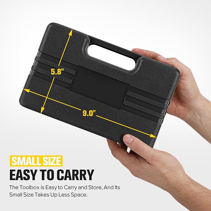 - Apartment-Sized, Big-Job Ready: The tool kit for home’s compact case fits under sinks, in closets, or car trunks. Use the tape measure for hanging shelves, Allen wrenches for furniture, or the utility knife for craft projects—no clutter, no hassle
