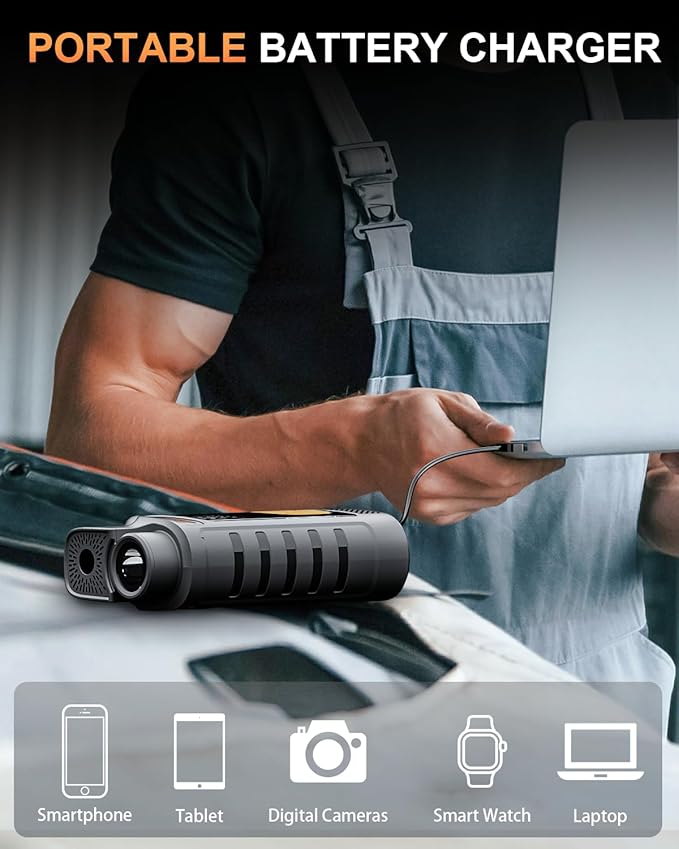 - Portable Power Bank--The jumper box for car battery portable supports USB-C fast charging (2-hour full charge) and a high-capacity 22.2Wh battery. Equipped with a USB cable for charging more electronic devices, it's perfect for everyday travel, long trips, or emergency charging. Say goodbye to low battery worries.