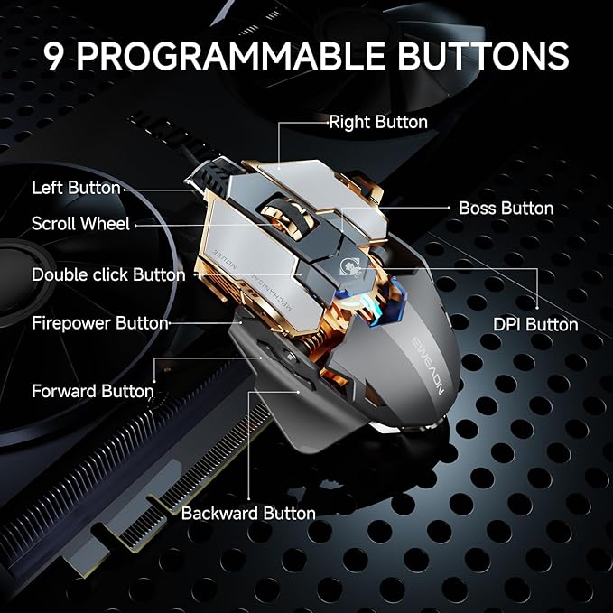 - 9 Programmable Buttons: Equipped with 9 programmable buttons, this PC gaming mouse allows you to customize commands for any game or workflow, including rapid fire, macros, and more. The included software offers customization for DPI, report rate, RGB lighting, and macro settings.