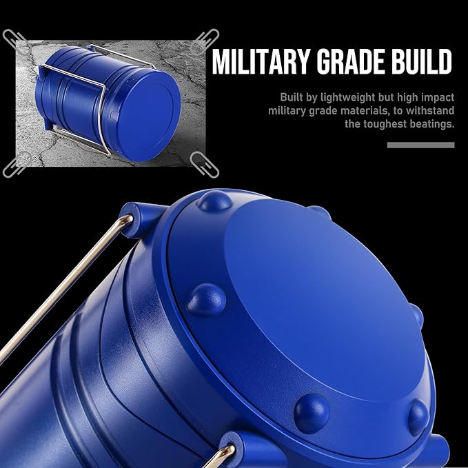 Lichamp LED Camping Lantern, 4 Pack Battery Powered Flashlight for Power Outages, Portable Collapsible Hanging Light Essential for Home, Outdoor, Emergency Lamp Survival Kit Gear for Hurricane, Blue
