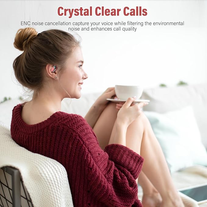 - Powerful Sound with 14.2mm Drivers: Equipped with precisely tuned 14.2mm dynamic drivers, these open ear headphones wireless bluetooth deliver balanced sound with clear vocal details. The air conduction technology creates natural audio dispersion, allowing you to enjoy music while maintaining environmental awareness. Open ear buds featuring a built-in microphone with voice enhancement, calls remain intelligible even during outdoor activities, so you can enjoy an unobstructed call experience.