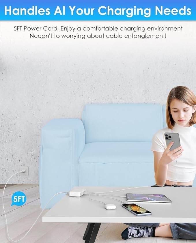 - 【Global Compatibility, Worry-Free usb charging station】: This charging station supports a wide voltage range of 100-240V means this usb power hub is perfect for international travel. Whether you're in North America, Europe, or Asia, you can rely on this charger block. The 5ft extended cable enhances flexibility. You can easily position it in your workspace, living room, or nightstand without being limited by outlet placement.