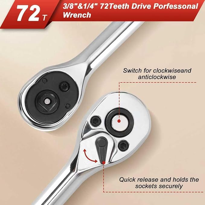 - 【Multi-purpose】: 1/4 and 3/8 standard and deep socket set is able to satisfy various maintenance demands of home improvement, car repair, vehicle repair and mechanism, other DIY projects. Value gift for men on various occasions like Father's Day, Birthday or anniversary.