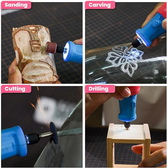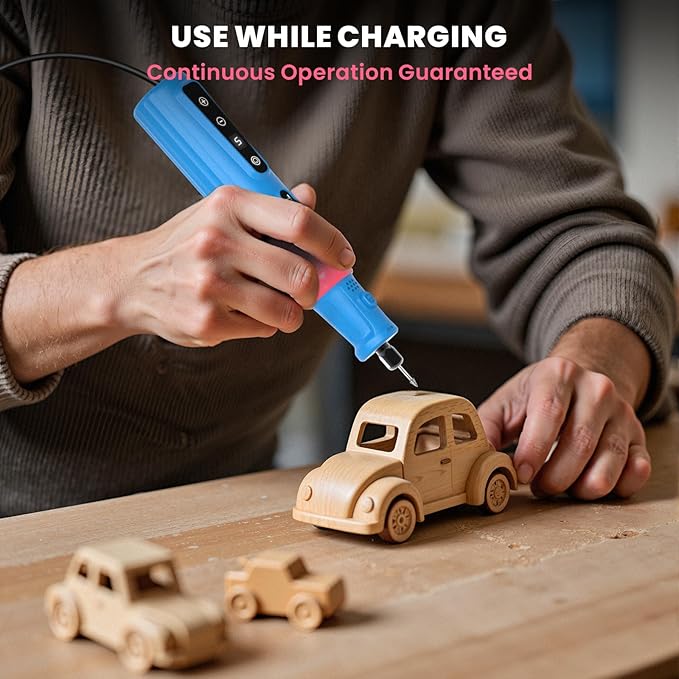 - Convenient USB-C Charging: Rotary tool equipped with a USB-C fast charging cable, this tool ensures work continuity without battery depletion concerns. The rotary tool offers cordless operation convenience, ideal for environments without power outlets