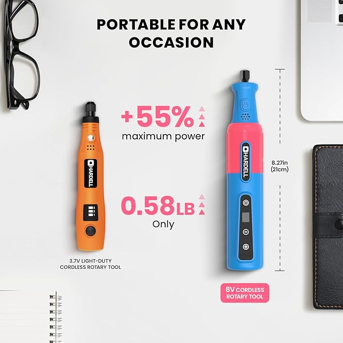 HARDELL 8V Cordless Rotary Tool, 80PCS Accessories, 6 Variable Speed Rotary Tool Kit with Digital Display, Type-C Charging, Mototool for Engraving/Sanding/Polishing/DIY Crafts