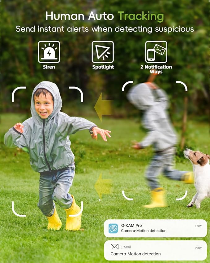 - [ Custom Mode & AI Detection & 2 Notification Ways] - Customize alarm schedules, notifications sounds, activity areas, PIR sensitivity, and intervals with Tiejus wireless outdoor camera for home security. The combination of PIR and AI algorithms offers the 'human detection only' function at no additional charge. Outside camera wireless will send you instant alerts via O-KAM Pro APP and E-mail when detecting something suspicious. PS: Our cameras only work on O-KAM Pro APP