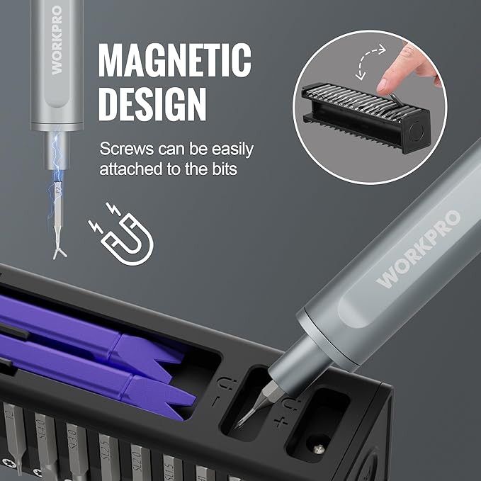 WORKPRO 38 in 1 Electric Screwdriver, 3.7V Electric Precision Screwdriver with Magnetizer and S2 Steel Bits, Max 0.3N.m, Cordless Mini Power Screw Driver for Electronics Phone Camera Laptop