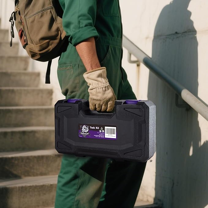 CARTMAN 126-Piece Home Tool Set Kit, Basic Household Hand Tools with Storage Case, Purple
