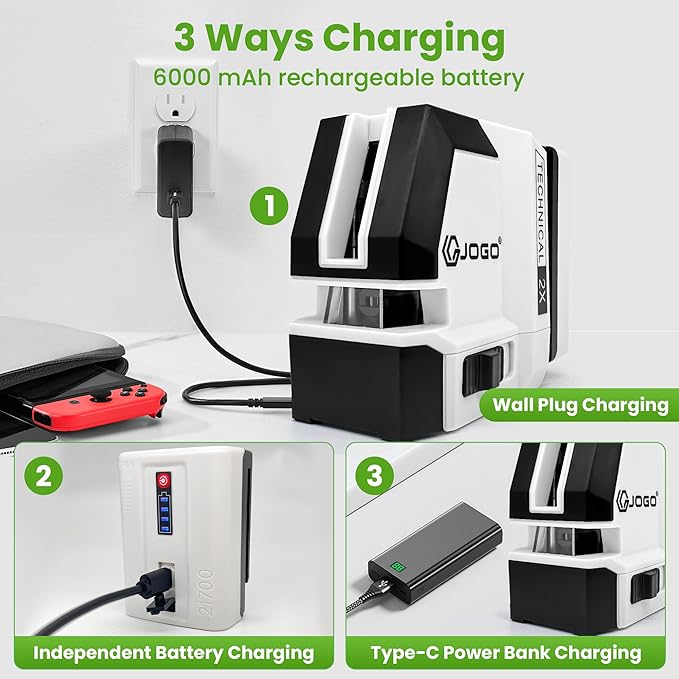 - Independent Line Control- G JOGO laser level features dual output windows that can independently projects vertical, horizontal, or cross lines 3 modes lines. Self leveling laser level also offers multiple brightness settings and strobe mode to customize laser intensity according to different lighting conditions.