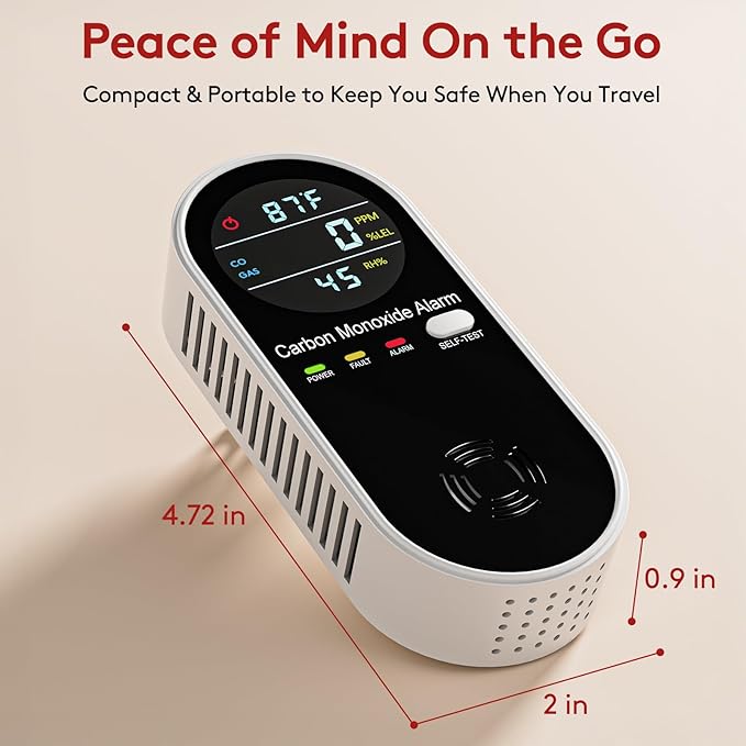 - 【85dB ALARM SYSTEM】Flashing red light and over 85dB alert at CO>150ppm / gas>5%LEL, providing timely alerts to any potential danger