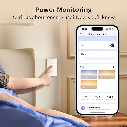 - 2-in-1 Neutral for Hassle-Free Installation: The led dimmer switch supports both no-neutral and with-neutral wiring setups, eliminating any concerns about your home's wiring configuration. For homes without a neutral wire, installation is straight forward, while for homes with neutral wiring, overload protection is enabled, while additional advanced features such as power monitoring