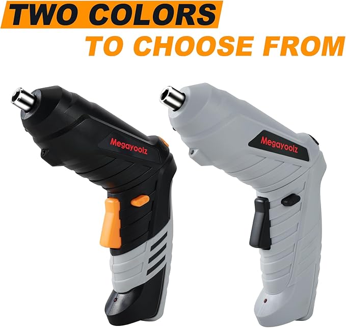 Megarooz Electric Cordless Screwdriver with Rechargeable Battery and Charger, Rotating Handle, LED Light, 47PCS Drill/Driver Accessories,Comes with packaging box for convenient storage (white)