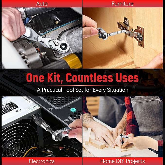 - Compact & Travel-Friendly: Stored in a compact folding case (7.87" × 2.68" × 1.7"), lightweight, space-saving, this socket wrench set fits easily in toolboxes, glove compartments, or drawers—ready for any job, anywhere.