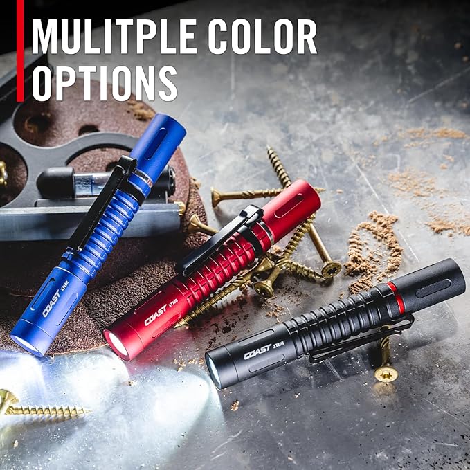 COAST XT10R 280 Lumen USB-C Rechargeable Pocket Flashlight/Penlight with TWIST FOCUS and Two-Way Clip, 3 Bite Caps included, Pocket Size for EDC, Work and Emergencies, BLUE