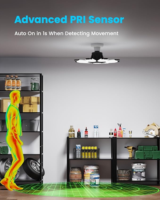 - 【Upgrade PIR Motion Detection System】Advanced 360° PIR sensor detects human movement up to 12ft away. Auto-illuminates when you enter, shuts off after 60s – 72% energy savings vs standard lights;