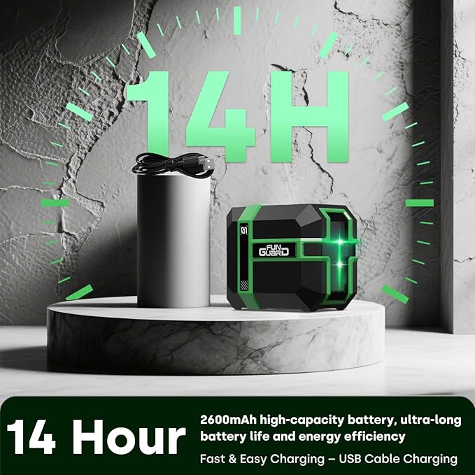 - 【Advanced Protection and Long Working Time】: Class II, < protection class 1 mW, IP54 (shockproof, waterproof and dustproof, wearable, shockproof, resistant to cold and high temperatures). With Type-C Rechargeable 2600mAh lithium battery, Laser Levels Self Leveling supports the device to last 14 hours.