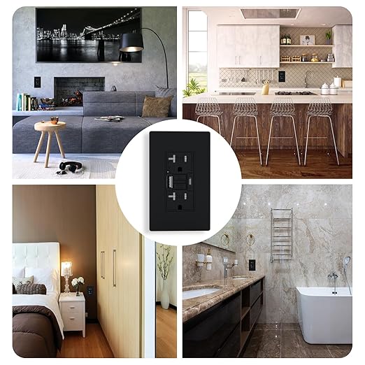 20AMP GFCI Outlet with Type A & Type C USB Charging Ports, Self-Test, LED Indicator, Tamper Resistant, GFCI Receptacle Outlet, Screwless Wall Plate Include, ETL Listed, Black
