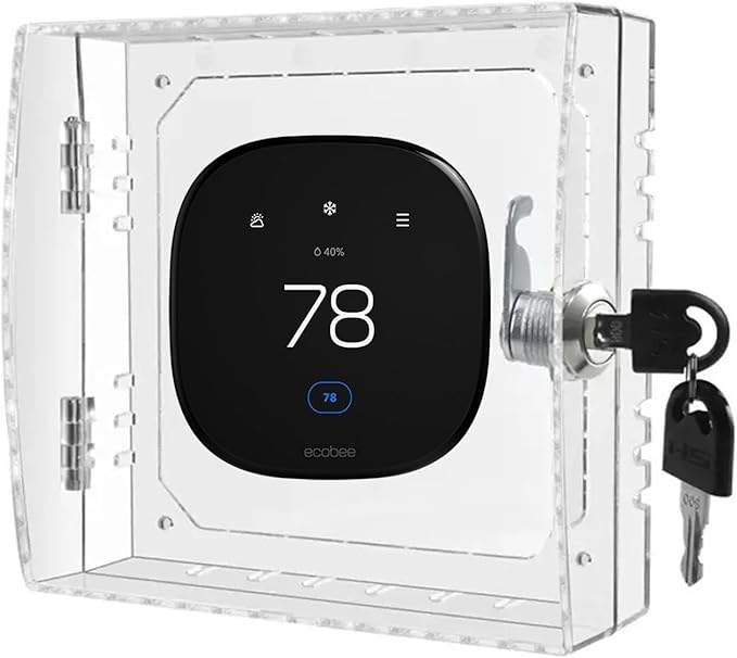 - 【Ultimate Protection for Smart Thermostats】This Thermostat Lock Box Cover safeguards your Ecobee Thermostat from tampering, accidental bumps, and unauthorized changes. Engineered with a secure key-lock system, this thermostat lock box with key keeps settings intact, preventing energy waste and high bills. Ideal for homes, rentals, and offices, it’s the perfect thermostat cover with lock for maintaining comfort and savings.